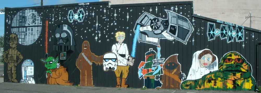 A few blocks away is a nice Star Wars mural. Do Wookies look like Sasquatch? |