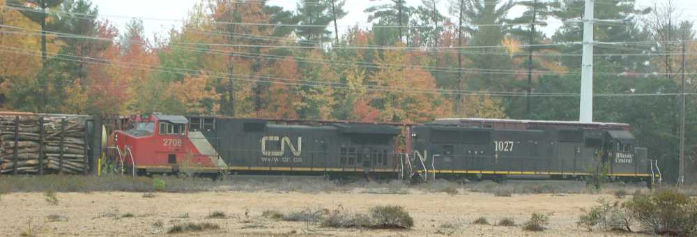 On a Saturday, a big train typical of the Point to Rapids night train is parked and doubled up, |