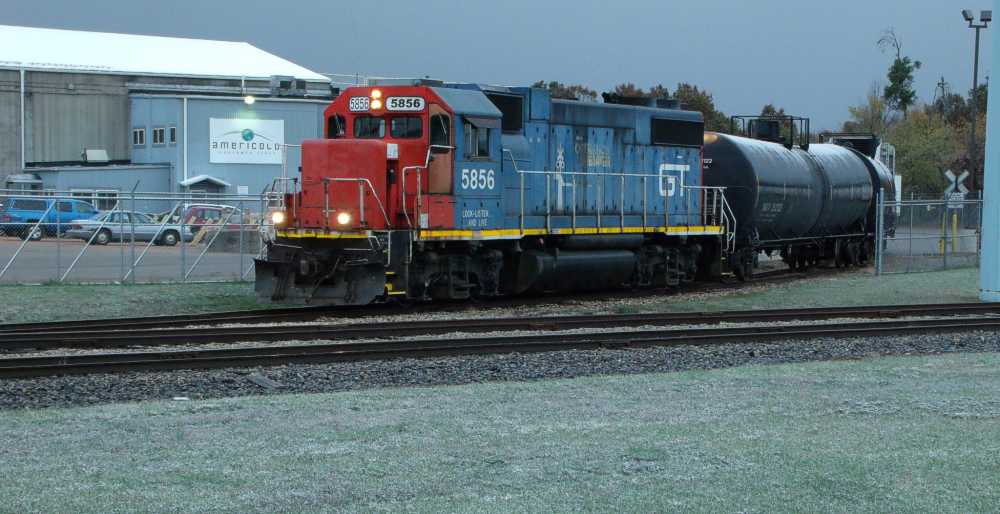 First snowy day in October, but the snow didn't last. The lighting was special, the sun is almost setting, and the snow clouds just passed. . . . . . . . . Parked at McCains potatoes the next morning, they didn't overnight in the Plover yard. |