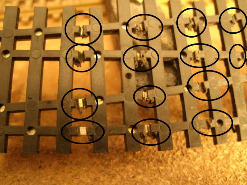 Sometimes the metal jumpers hidden in the plastic frogs can break if they are bent too far, |