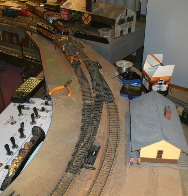 I home-bent a used regular switch for the outside curve for a natural fit.