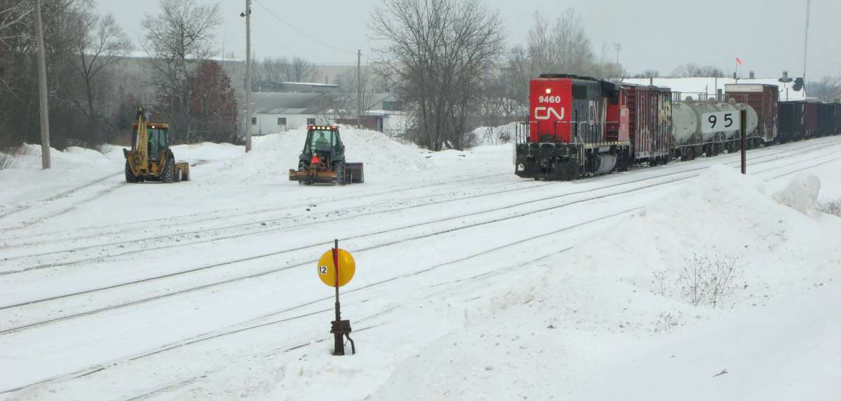 | The next morning, the Biron paper mill job comes past milepost 95. |