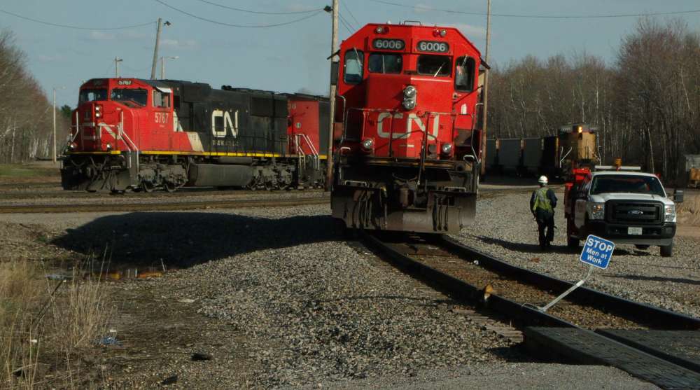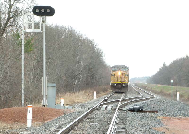 With the power on the main. Considering how wet and boggy this area is, I would leave a loaded train on the main. The siding has only been there for 3 years and still might be on 'soft ground'. |