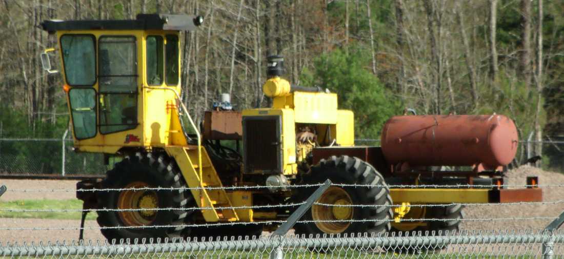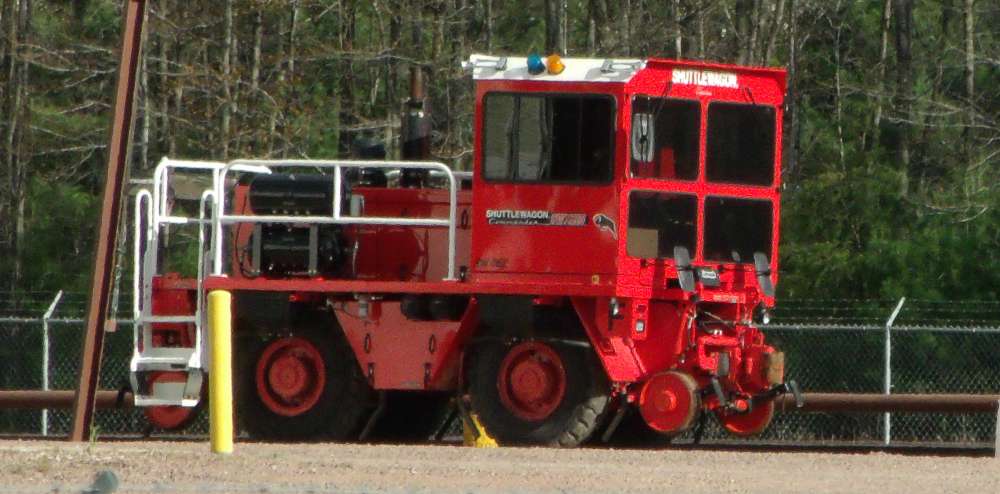 And for a long time they used this yellow car mover. It actually has a brand name logo on the side, but its too small to read from this distance. It has big tractor tires, but no rail wheels. The coupler and air brake hose is on one end only. Without rail wheels, I would guess it is not wise to pull a load over switches and other obstacles that threaten the rubber tire sidewalls. Might be an ok machine for street-level tracks? |