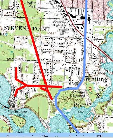 The red flag was a quarter mile south of the Soo / WC / now CN mainline, west of the Stevens Point depot.