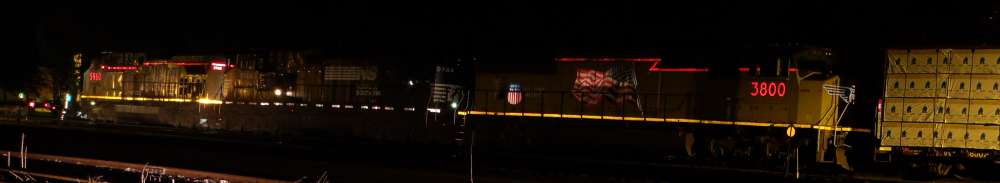 | UP freight in Rapids after sunset |