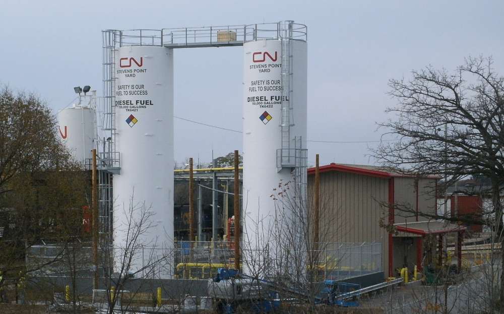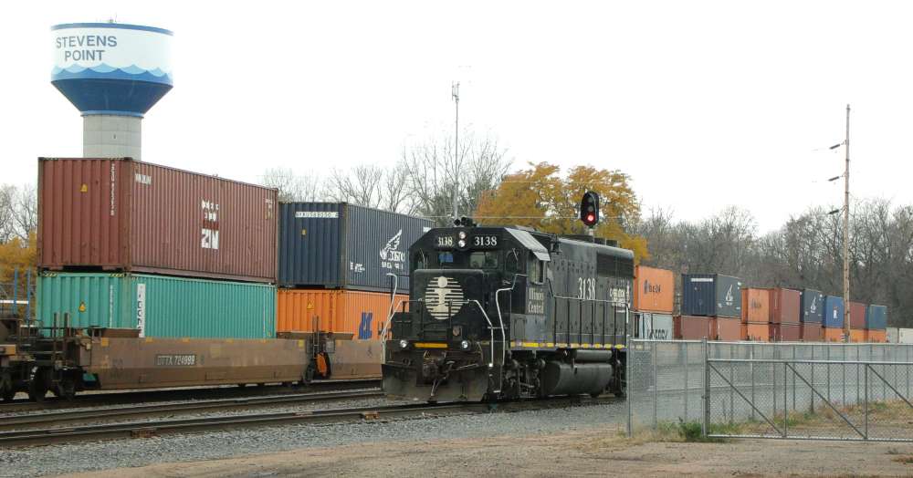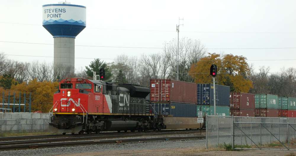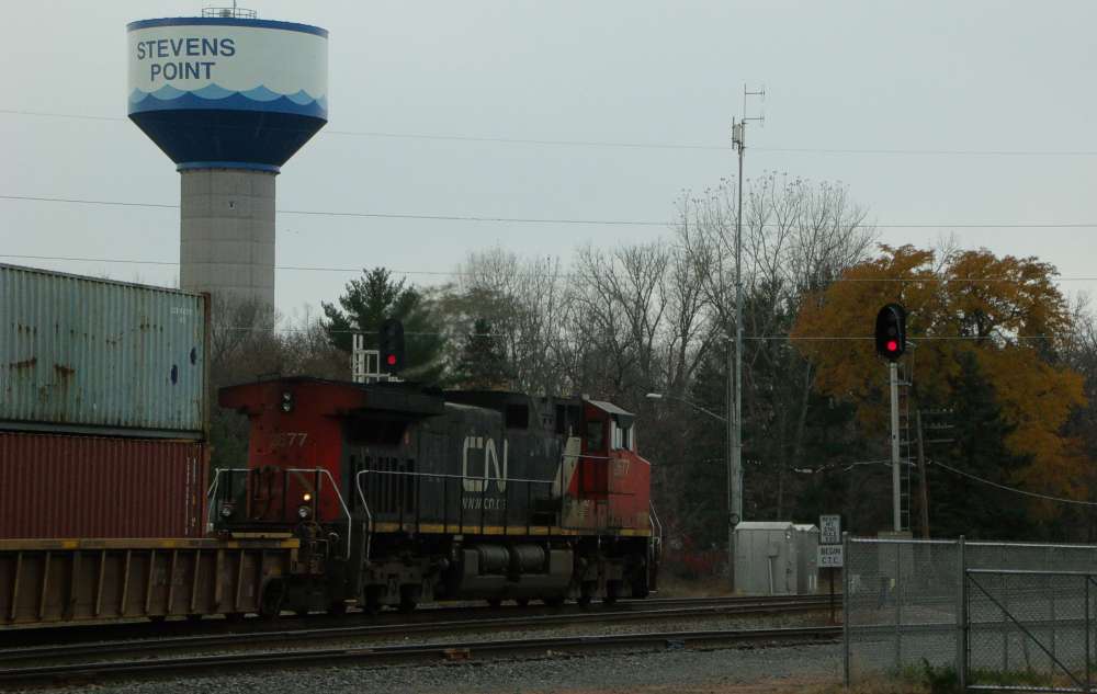 An eastbound train rolls in at 10am. There's plenty of variety, if you don't like this manifest, just wait a half hour and see what comes next. . . . Stevens Point is a busy place. |