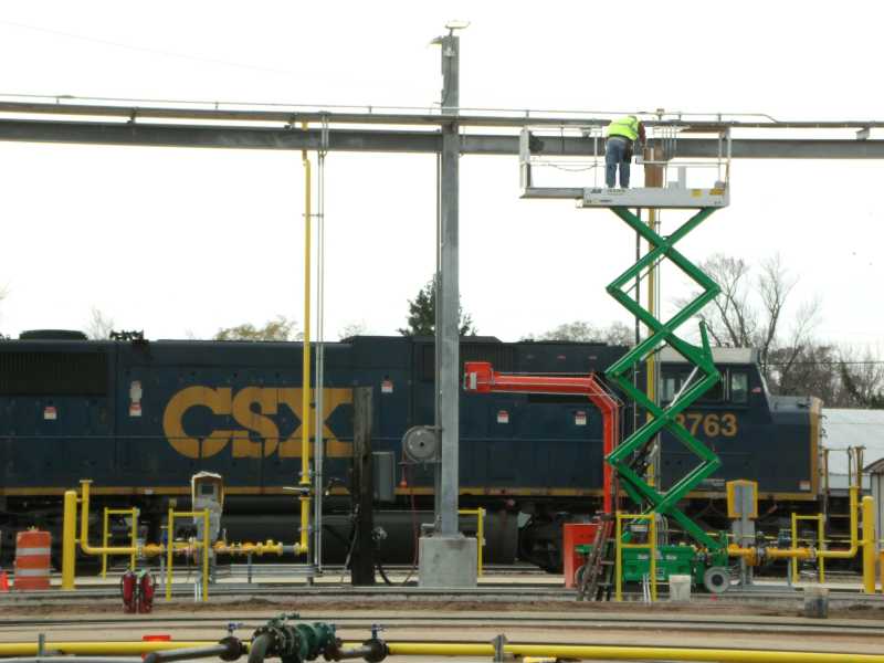 The work is coming to an end on lights and the pipe line. (a CSX is in Stevens Point, there's such a variety of power we see now in the center of Wisconsin.) |