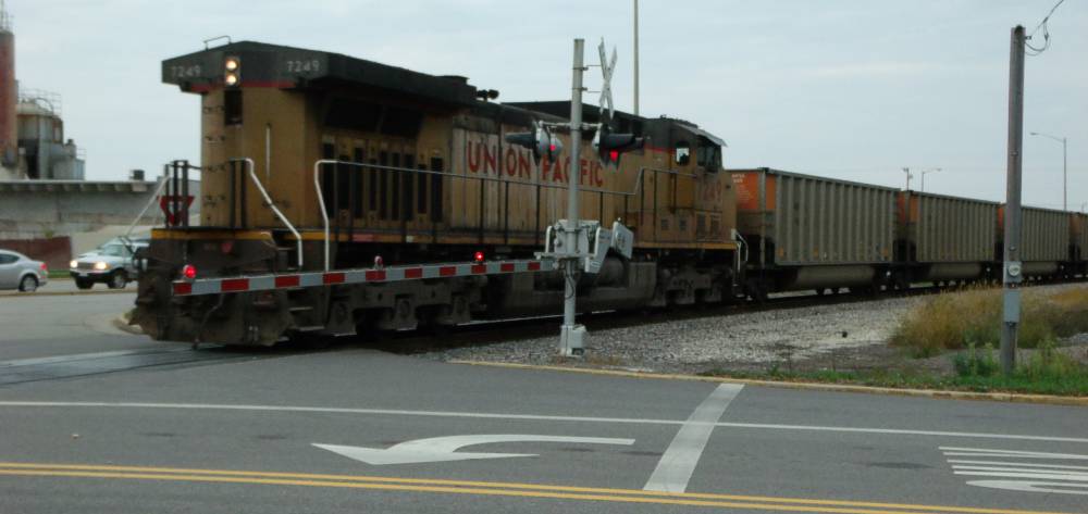 | UP power on an empty coal train from Weston. A daily event, maybe they are building their coal pile for Winter? |