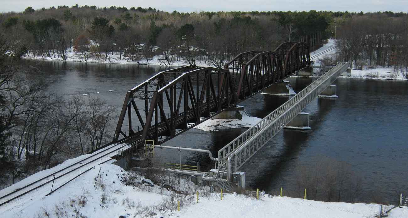 I learned my old camera gets confused by large areas with just white snow, it needs real objects like buildings or trees to see a proper scene. It was at evaluative exposure and a fast shutter, and next time I will try the center weighted average setting. Besides also opening it up +2/3 for snow scenes. The Black Bridge on the Wisconsin River on the west side of Stevens Point. |