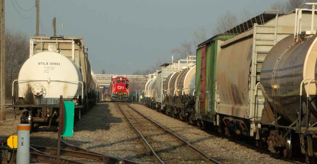 | Busy evening in Wisconsin Rapids. There's 8 tracks, and 3 trains working |