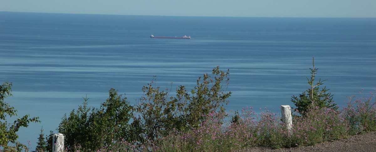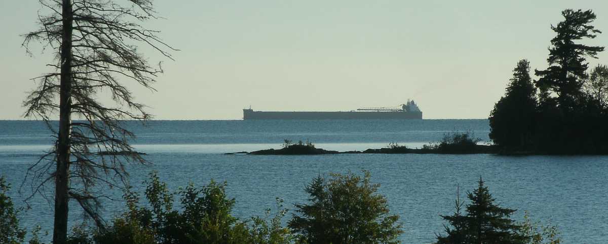 | I conisder myself to be lucky to see 3 ore boats in one hour one morning. In fact 2 actually were passing within minutes of this scene from Copper Harbor. |