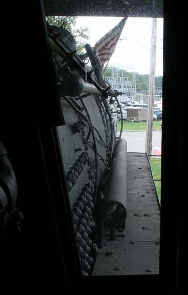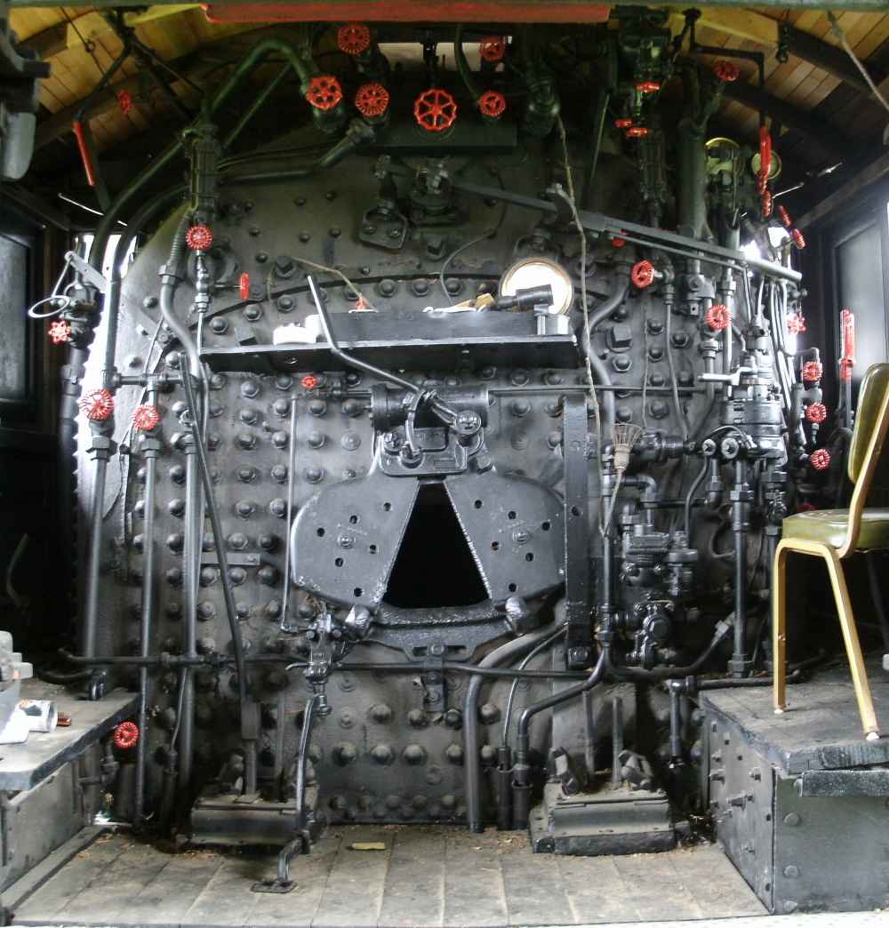 The back head, with all the levers and valves. Will anyone want to explain every one? I could number them on the picture. And notice the bright new boards on the cab roof. |