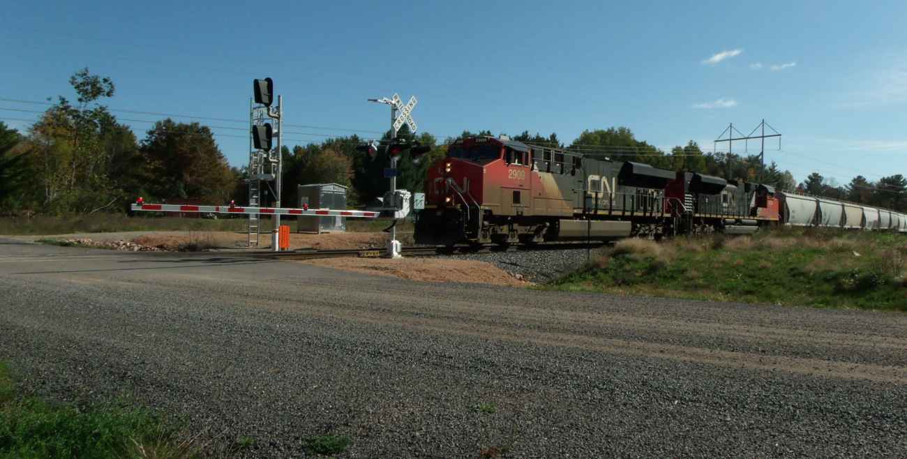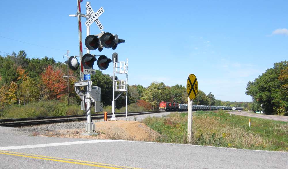 A west bound came roaring over Deer Lane. With a west wind this day, I could hear horns in the west, near Junction City. But I didn't hear any distant horns from the east, just a rumble and then the headlight popped over the hill. A gate and flashers is a lot of protection for a gravelled town road. |