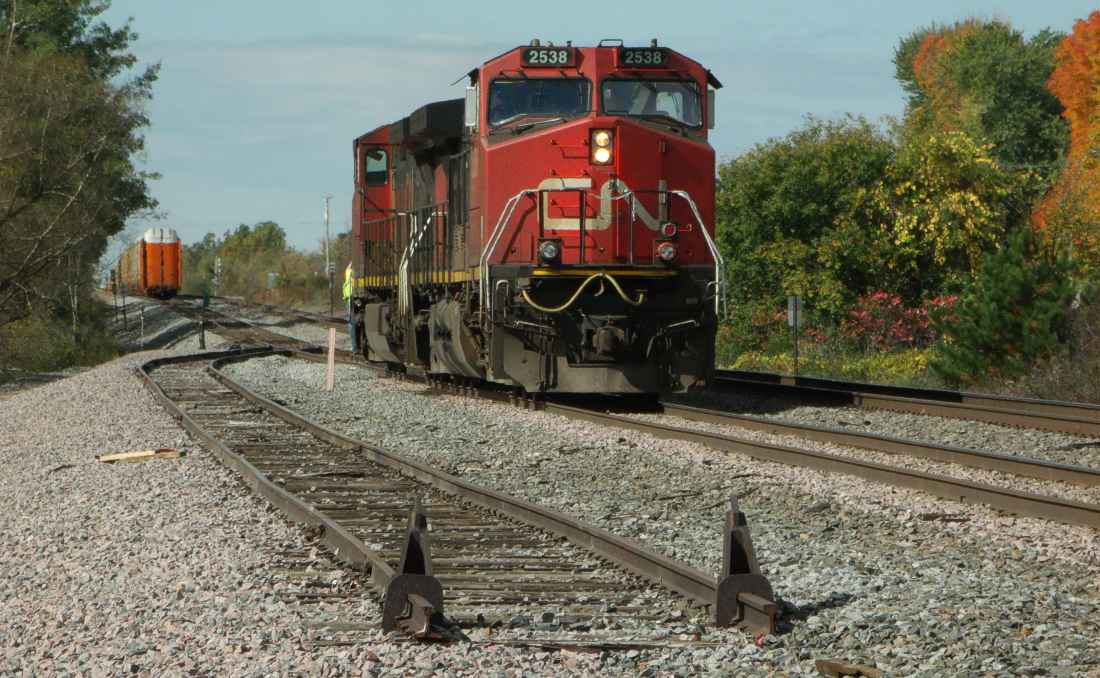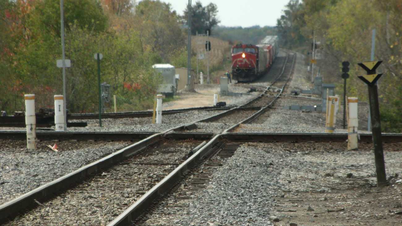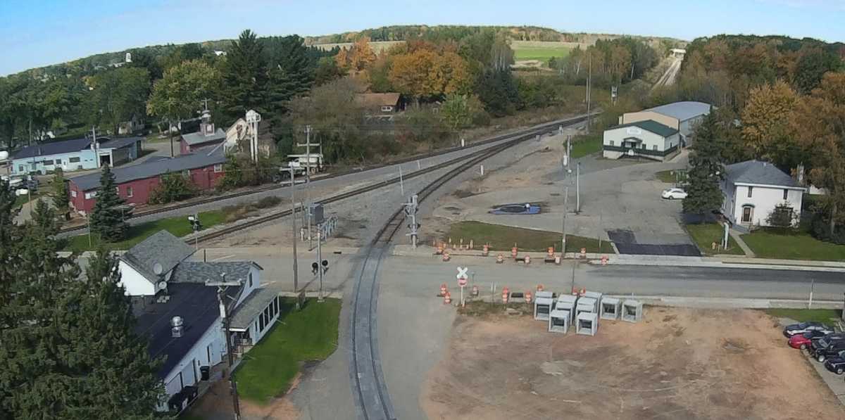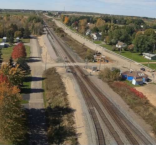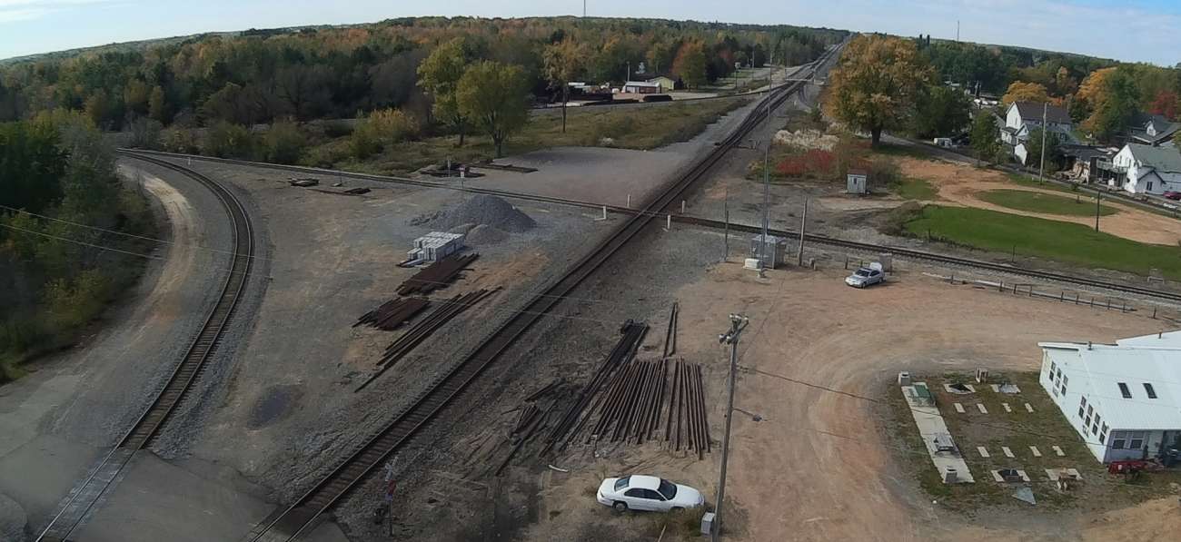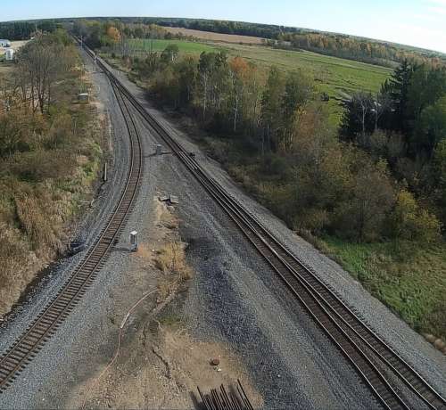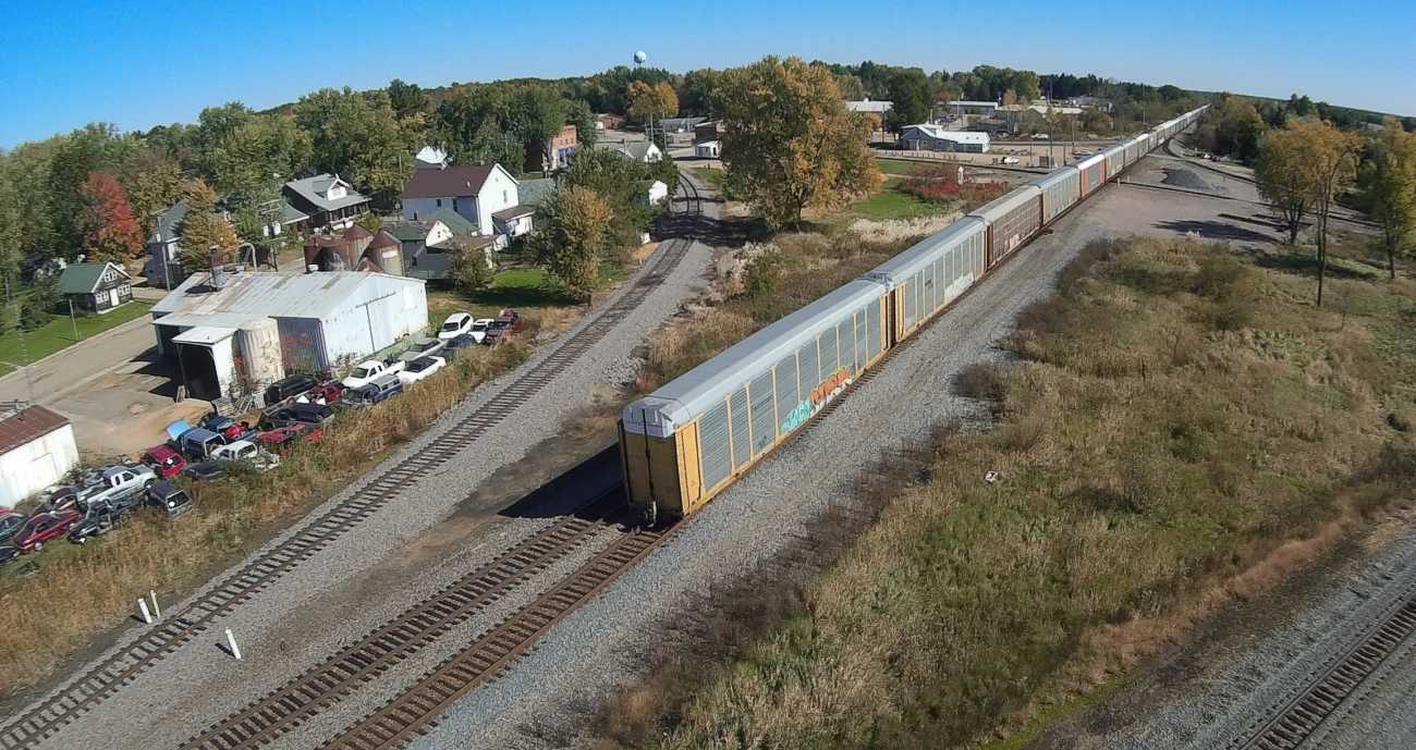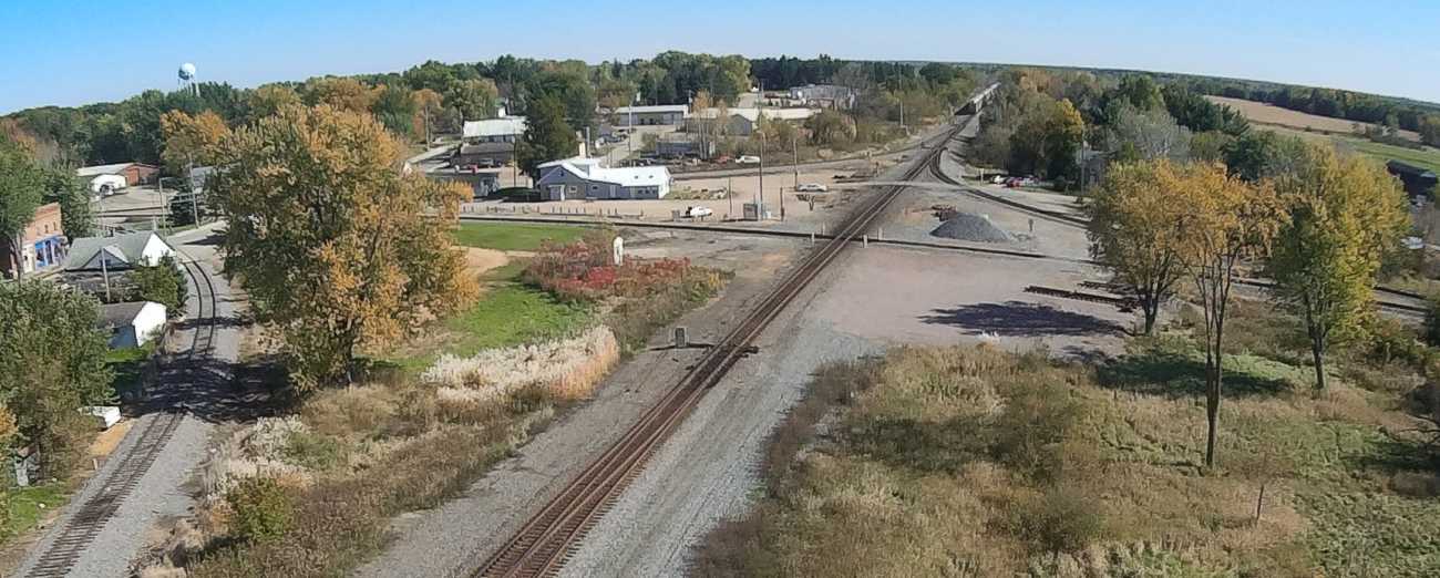 And after a westbound clears, they head east toward Stevens Point. (quadcopter picture) |