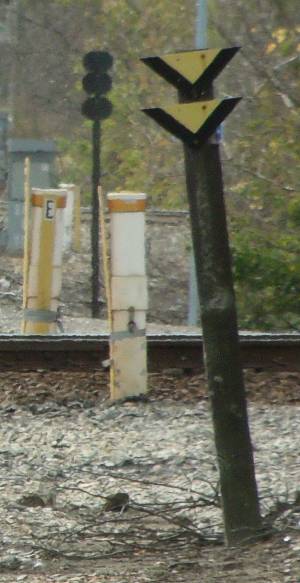 I see the 2 upside-down triangles of yellow and black to designate where a snow plow operator has to lift the blade clear for the diamond and then the gravel road crossing.