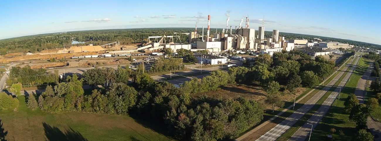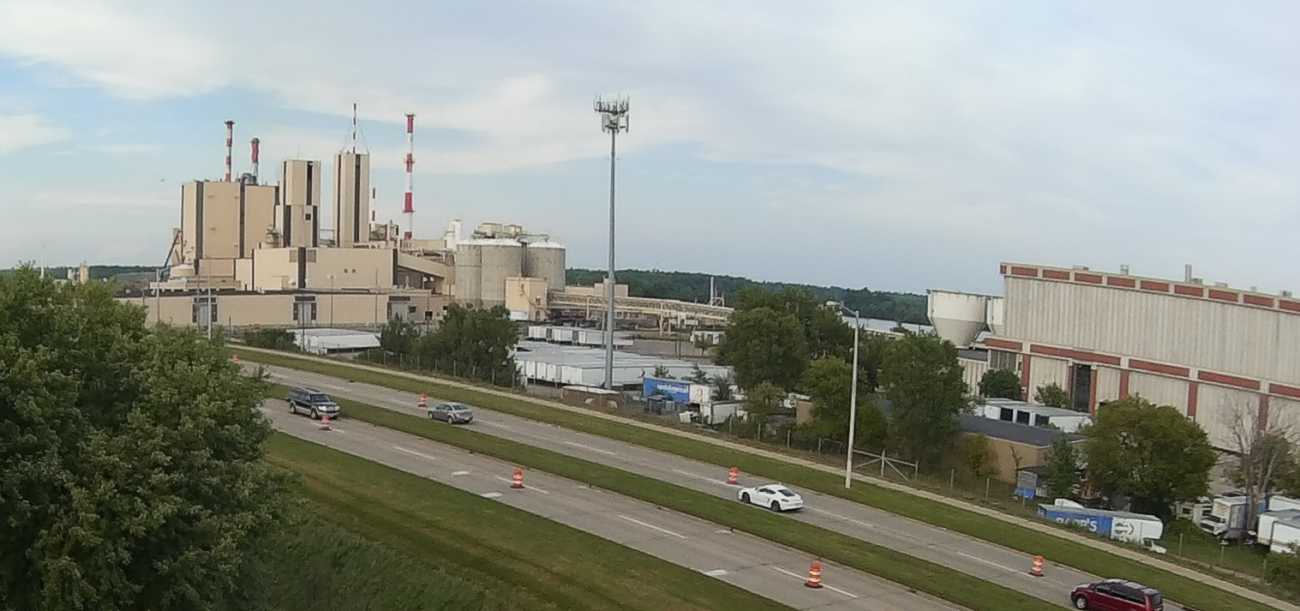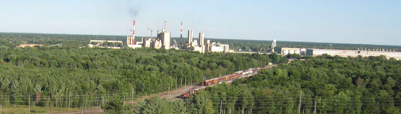 | The Green Bay and Western crossed between the pulp mill and the paper mill, but the tracks don't show in this view. |