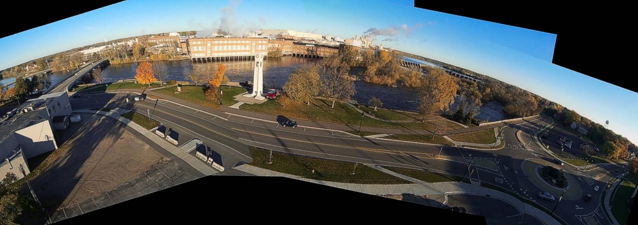 The Wisonsin River and Mead Riverview Park. My photo stitching isn't perfect, and I didn't take out the wide angle distortion, but I see its worth coming back again. |