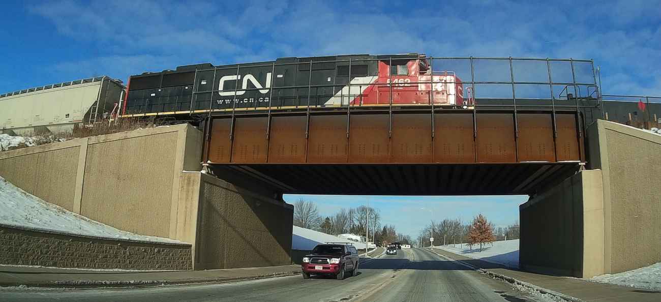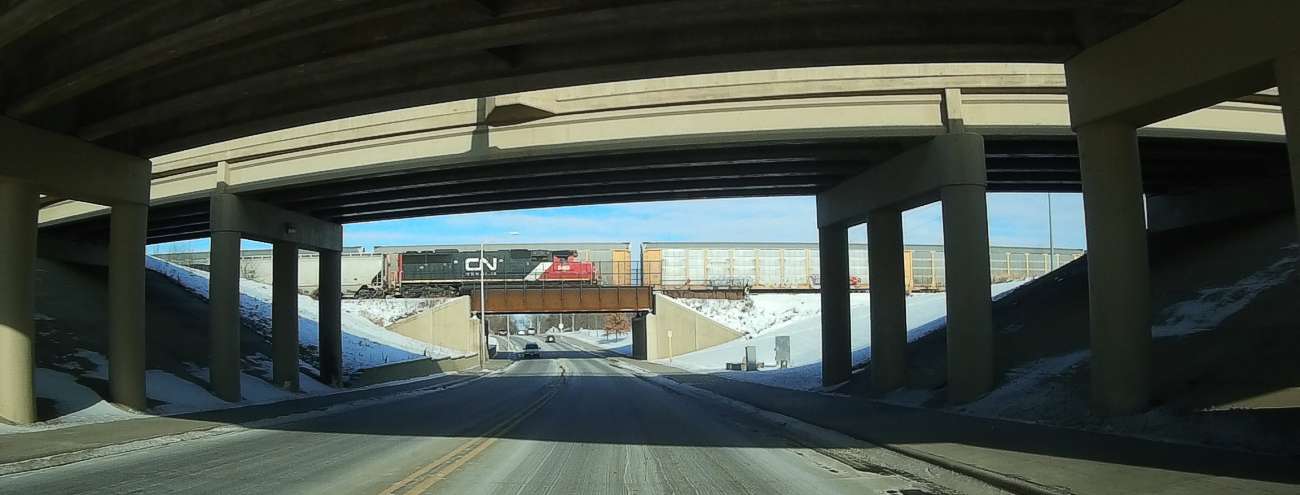 | The dash camera shows Peach Street, from under Veterans Parkway, state highway 13. |