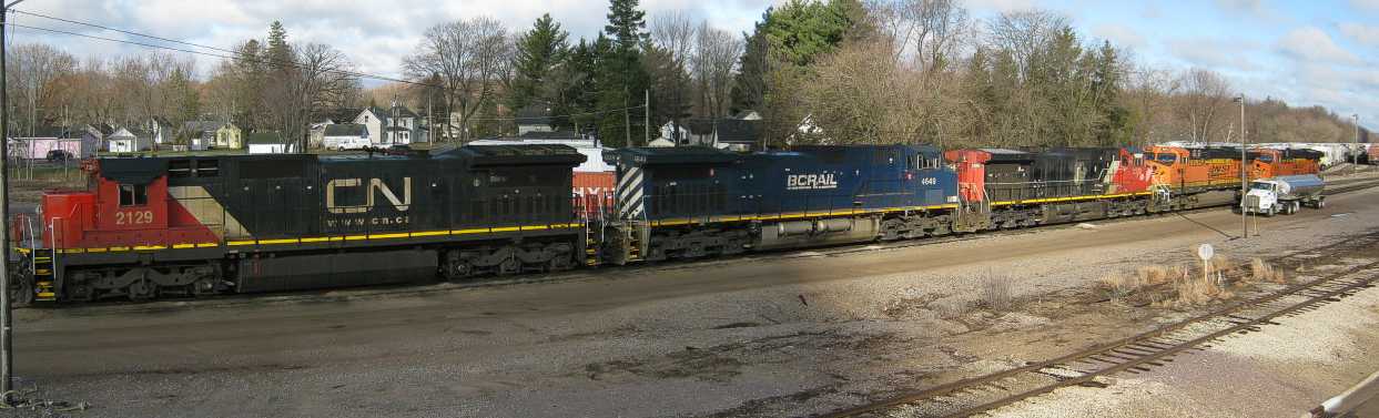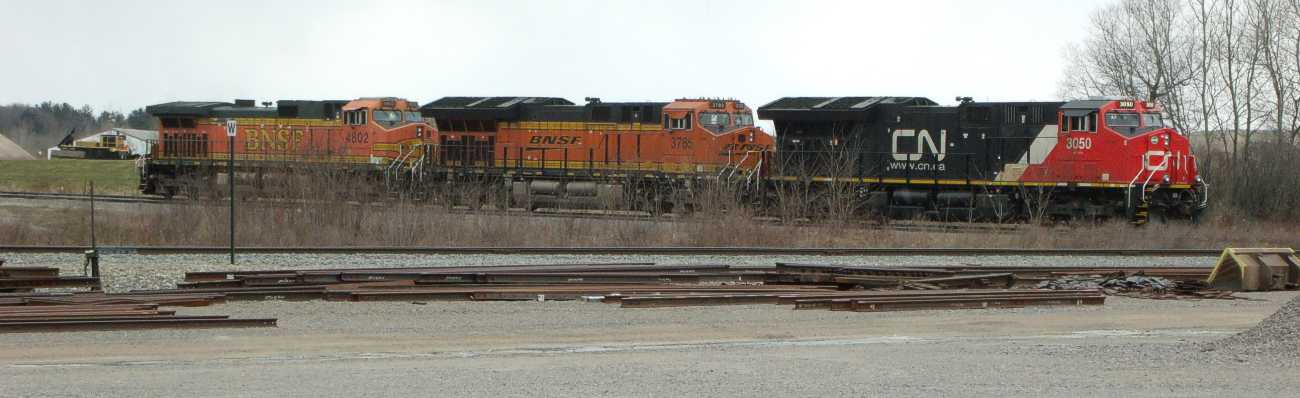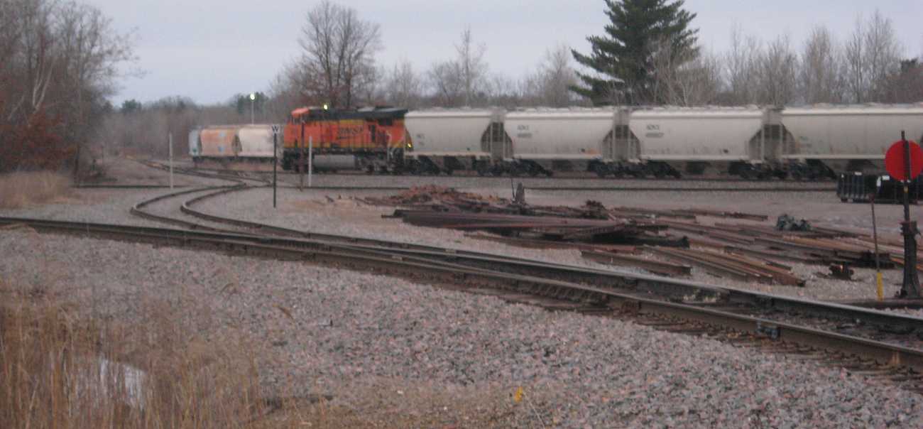 | That evening, a different BN train pulls past the yard . . . |