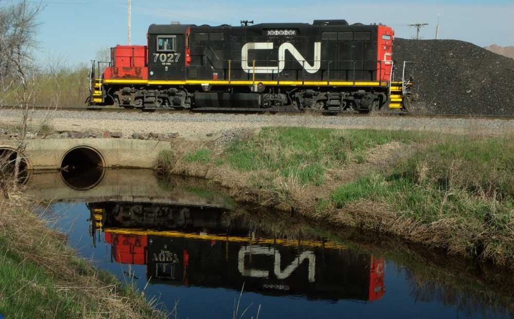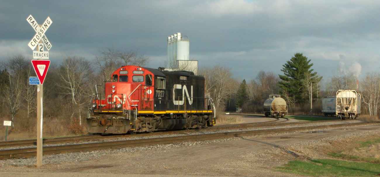 Wisconsin Rapids, Wisconsin, USA; 2017 These GP9's are as old as I am. 2 were in town, working local switching jobs. A third came and went. Here's the 7027 sitting by Thiele Clay on the northwest corner if Rapids. |