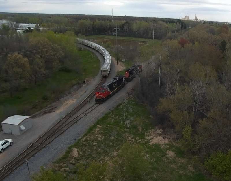 | And set out the second unit. I suppose the empty train doesn't need it, and maybe there's plenty of power already in Taylor for the loads. (quadcopter picture) |