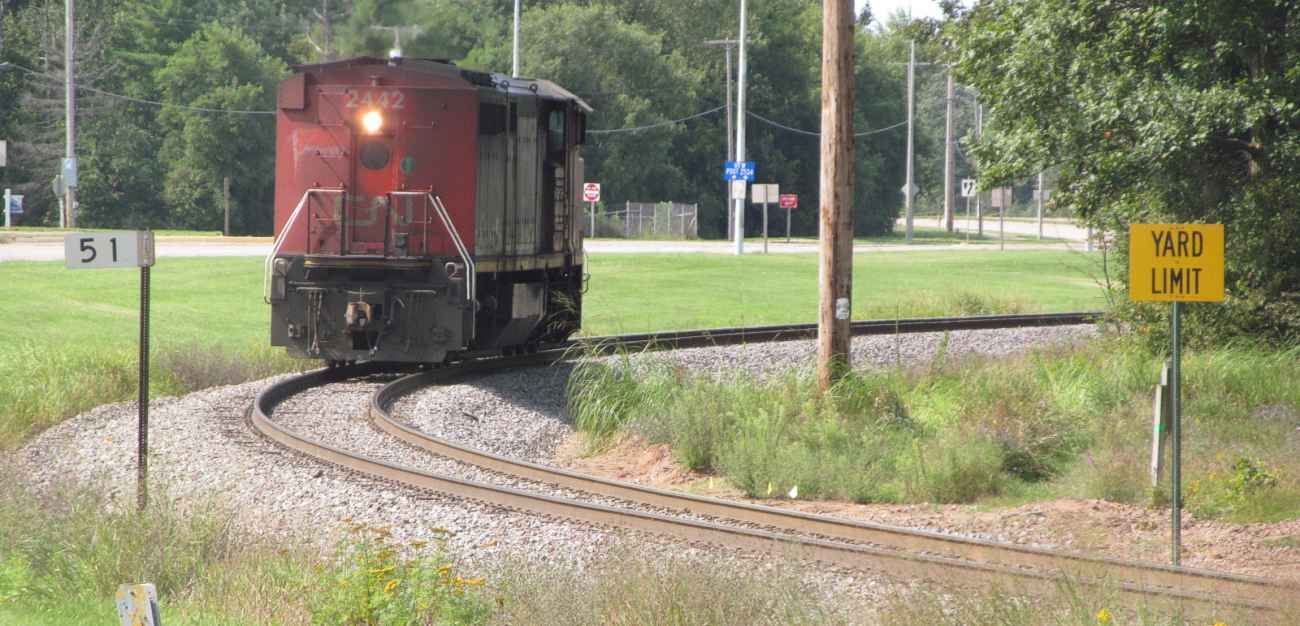 A train is being built in Wisconsin Rapids, and some cars for it are waiting in Junction City, 9 miles away. It's just a short wait at the yard limit to get a train order and get out on the road. |