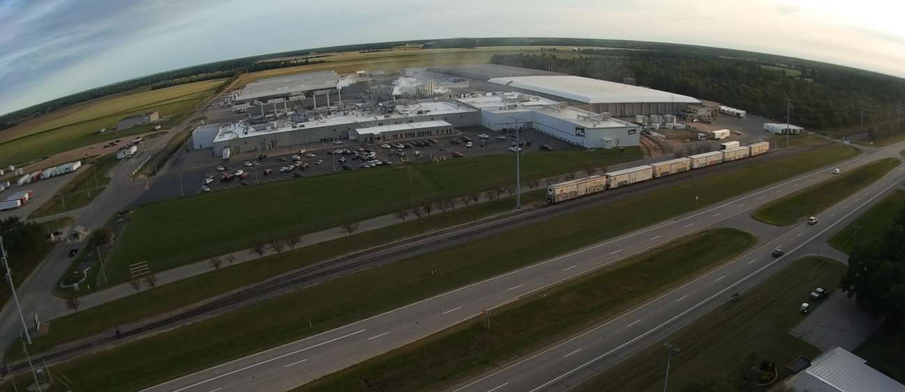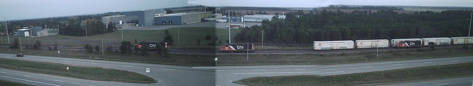 There's 2 manufacturing or processing plants between Plover and Wisconsin Rapids. This picture is a stitch of 3 pictures, which explains how the Plover engine shows up 3 times. Scroll right if I made it a bit wide for your screen. The left side is a bit darker and I didn't take time to fix that, for what its worth. They are heading west to Rapids to pick up some cars. The Cryo-Trans refrigerated cars in this siding are not for the local industry, they are extras for McCains potatoes 3 miles further west.