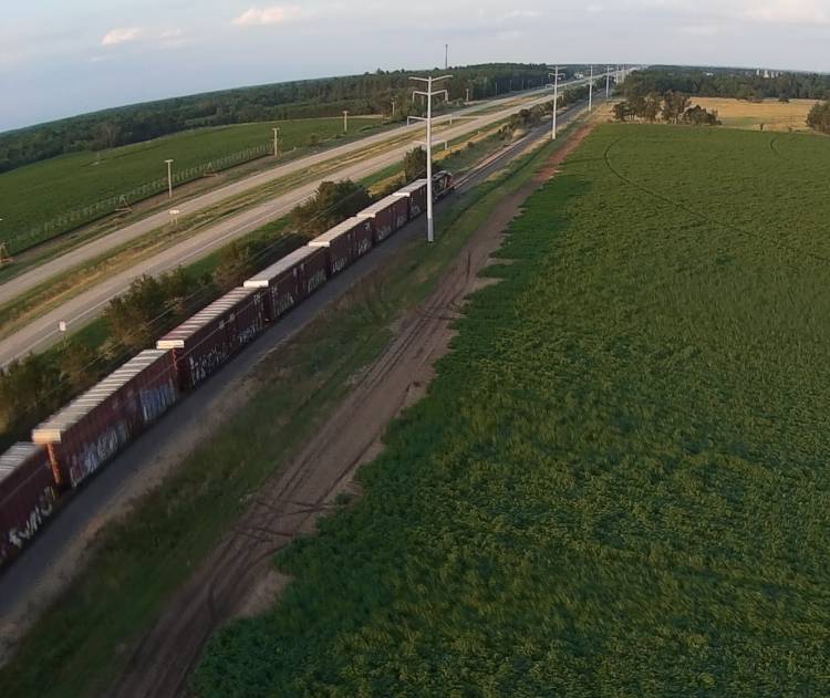 The evening Plover turn picked up cars from the east side of Rapids, this time paper mill traffic, and is heading back east, along Highway 54 and past the potato fields. |