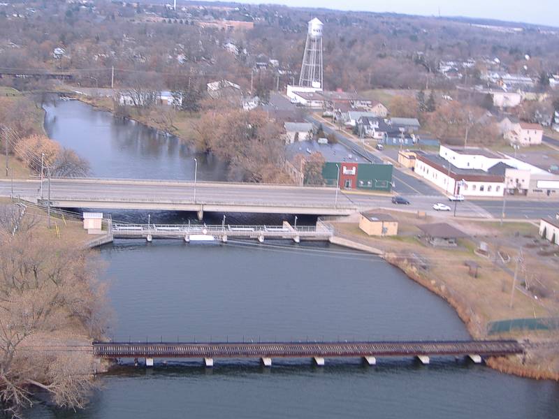 A quarter mile in the distant left is a city park and the black RR bridge on the former CNW main line.