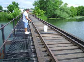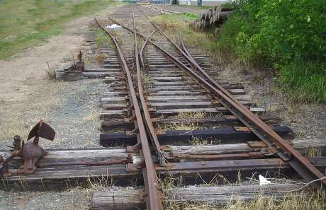 Main line rails end on north end of bridge.