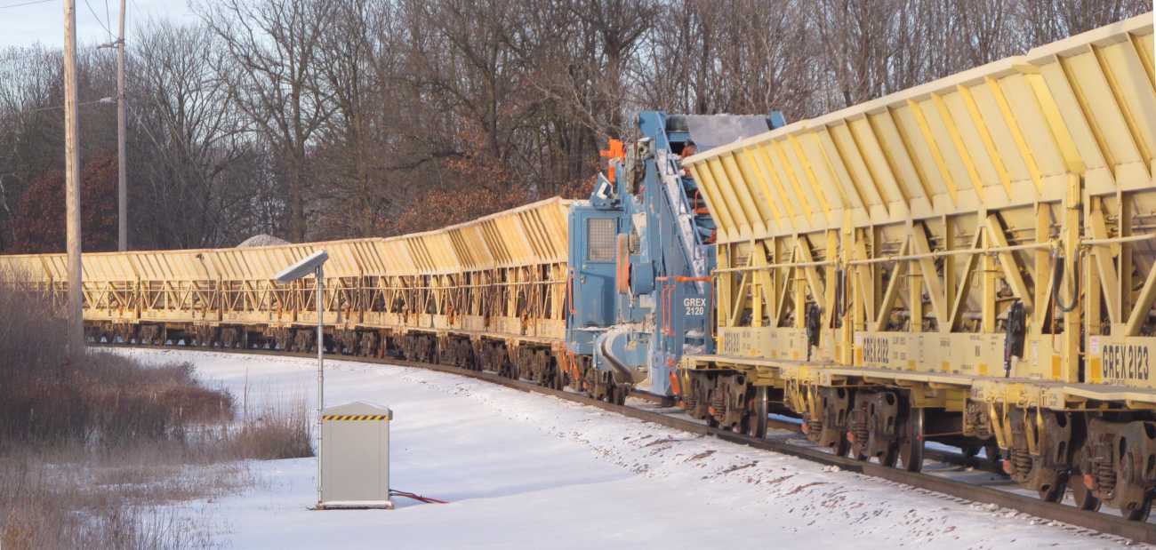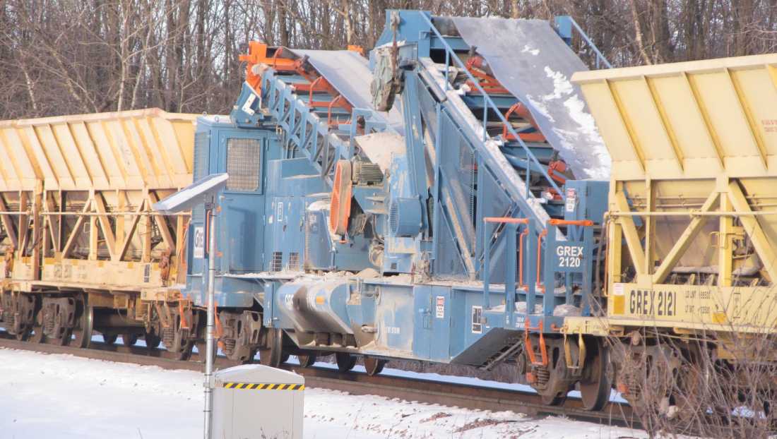 The unloader is interesting and I have never seen one in use. That's a very steep belt to elevate ballast. I suppose the second conveyor swings to either side to finally place the ballast. |