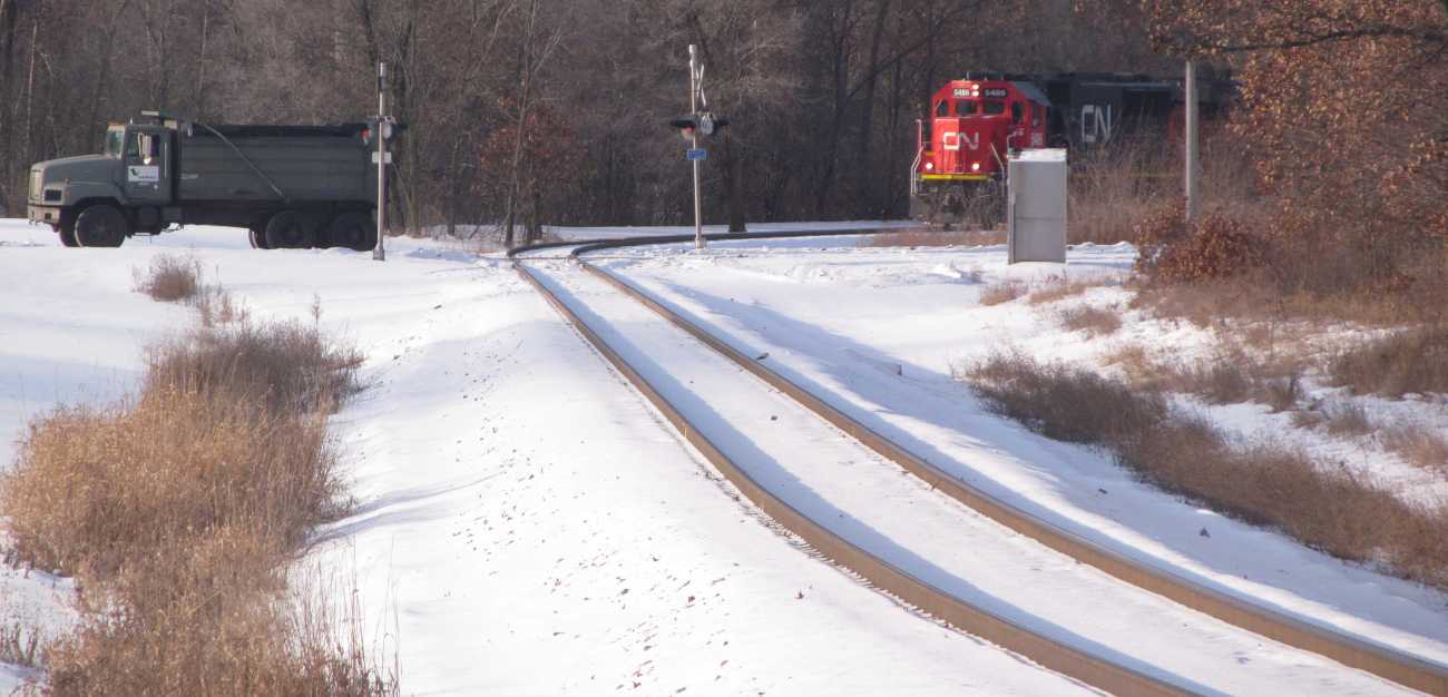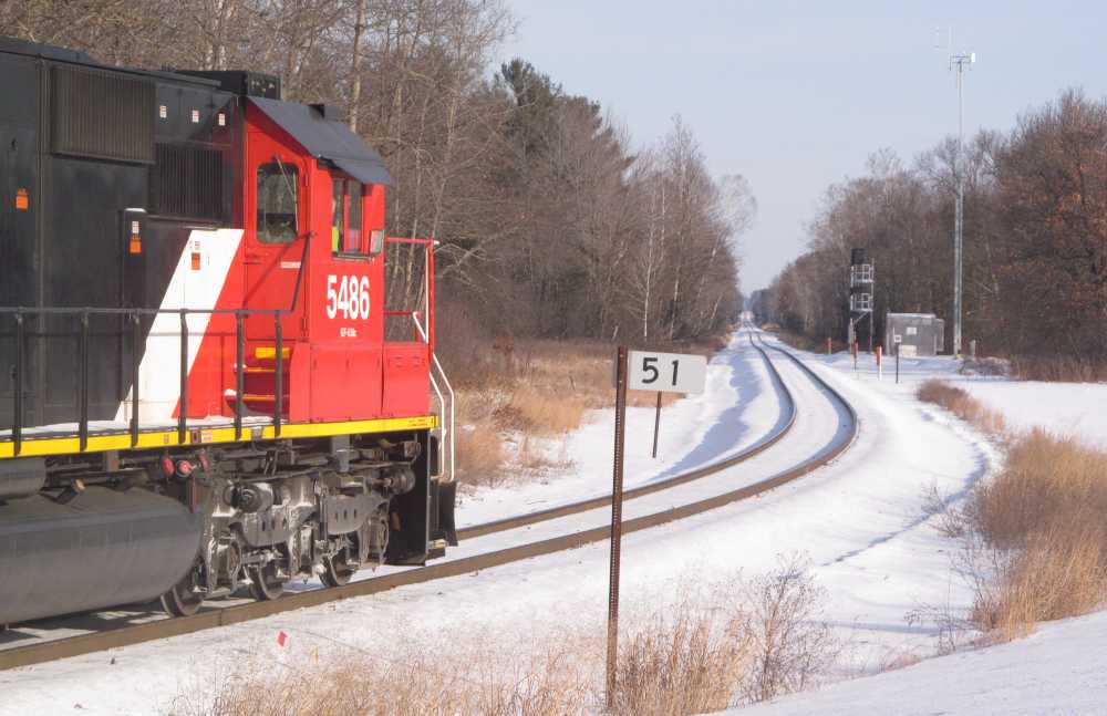 | Mile 51; the new signal heads are not turned to be visible yet, and a tower has been erected. |