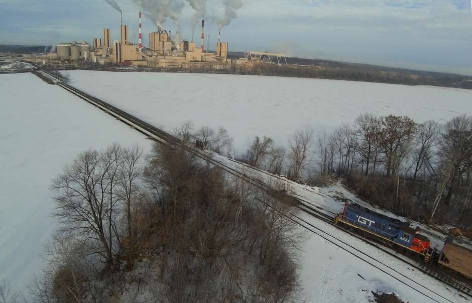 The CN paper mill job pulls cars from storage on the east side of the Wisconsin River every morning