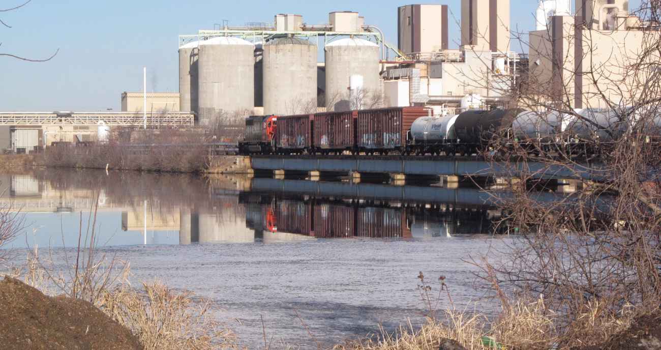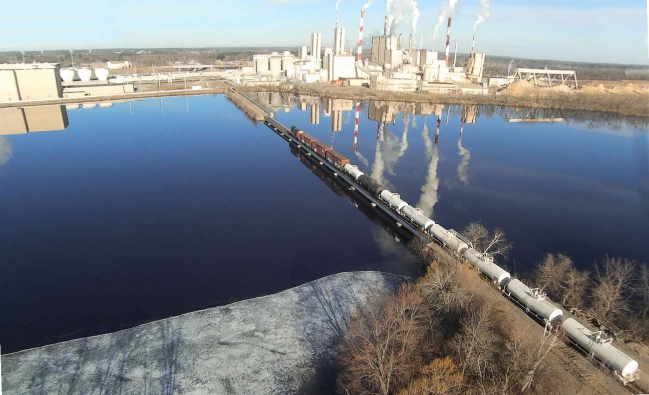 March, 2018. Wisconsin Rapids, Wisconsin, USA The morning paper mill switching job pulls clay and Kraft bales to the big mill. |