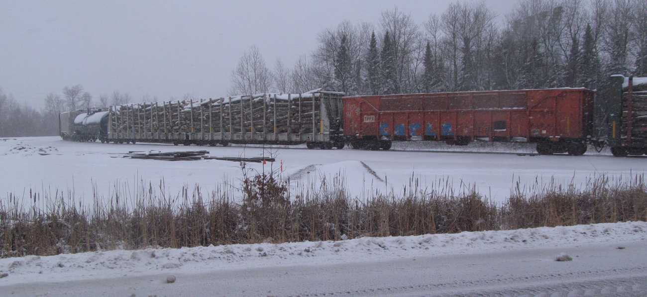 Even some sand hoppers, maybe catching up with some unit train? And lumber cars that should go all the way to Superior and eventually get to Canada? |