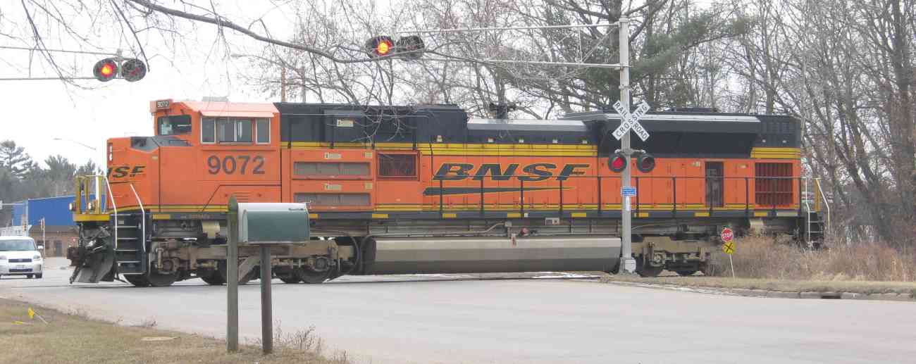| A lone BNSF moving across 25th Avenue in the middle of the day, I don't know why. |