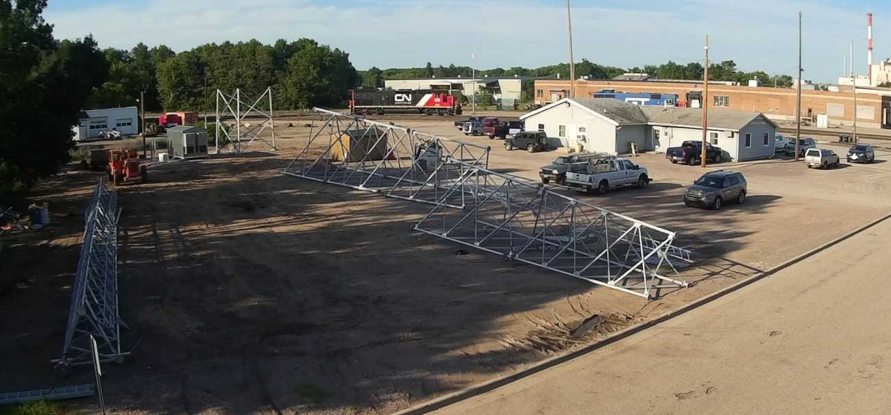 | It showed up as just pipes and braces, to be bolted together like an erector set, which took 4 days. |