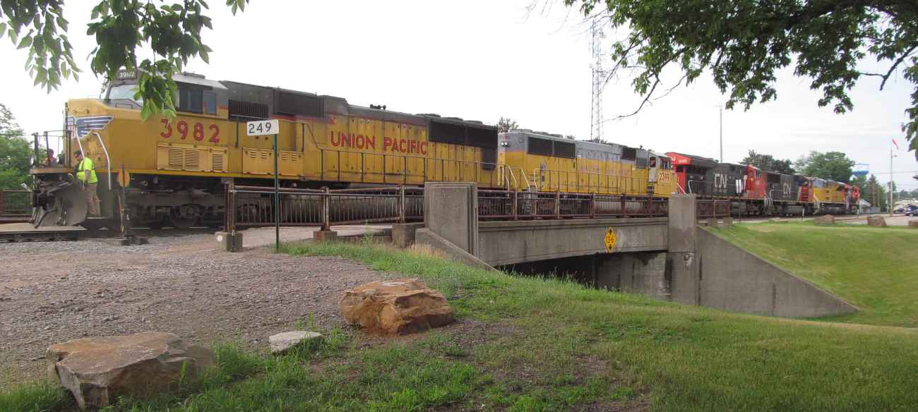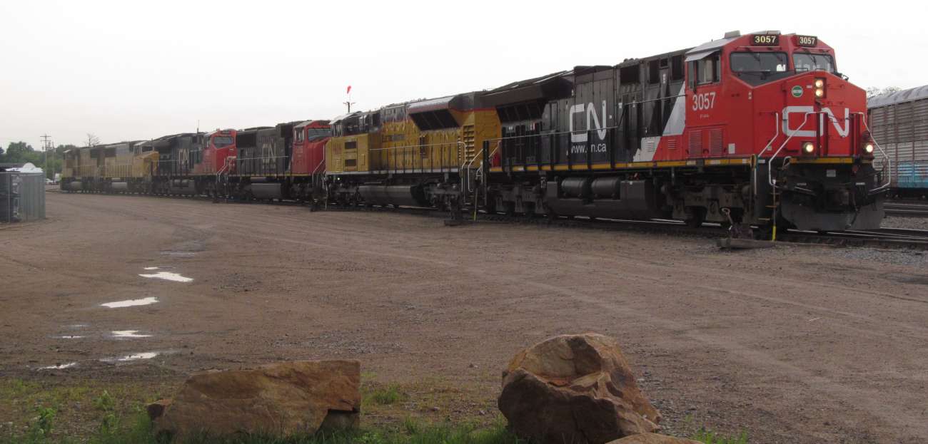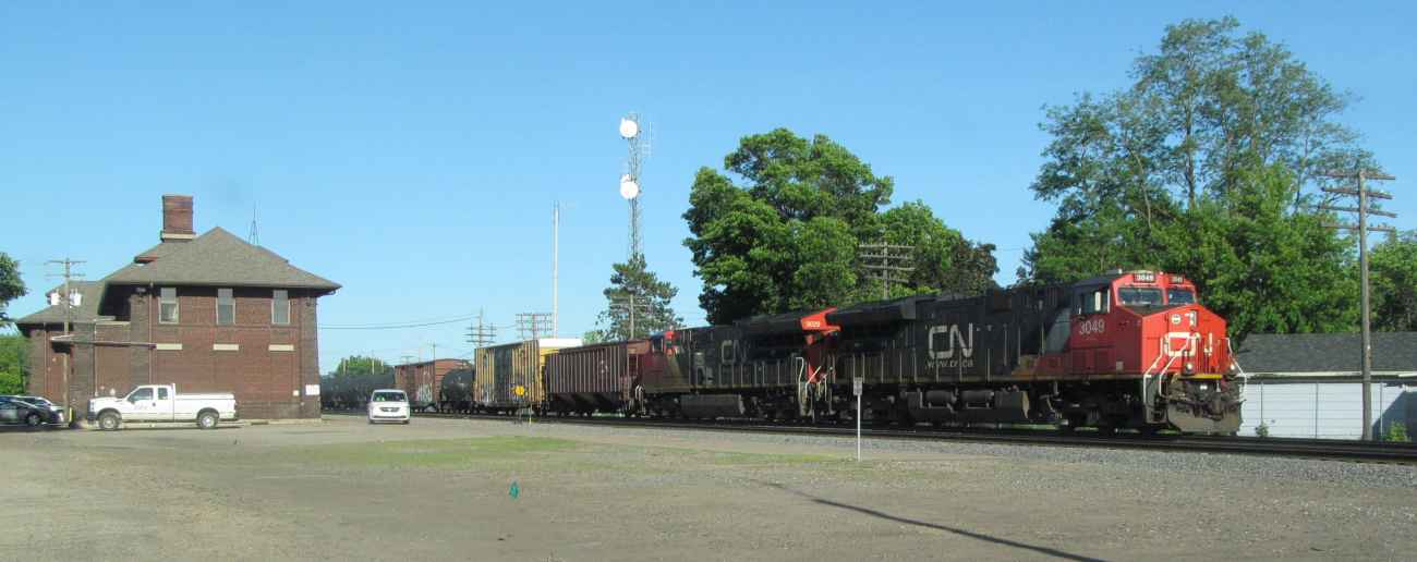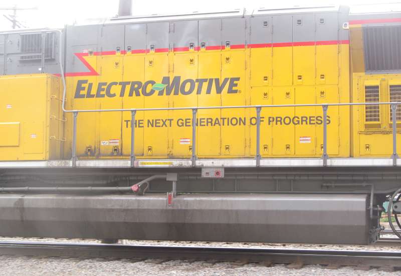 And on a Saturday I go to a garage sale and then get lawnmower gas. (Its getting expensive again, almost $4 for the no-ethanol real gas. David said a few years ago that not only does he have to watch the gas mileage of the car he drives, he also has to watch the mileage of his lawn mower.) And I see all this power backing past the depot and over Church Street |