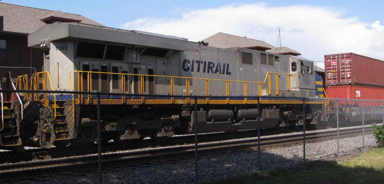 | A CitiRail is the second locomotive on the westbound stack train. |