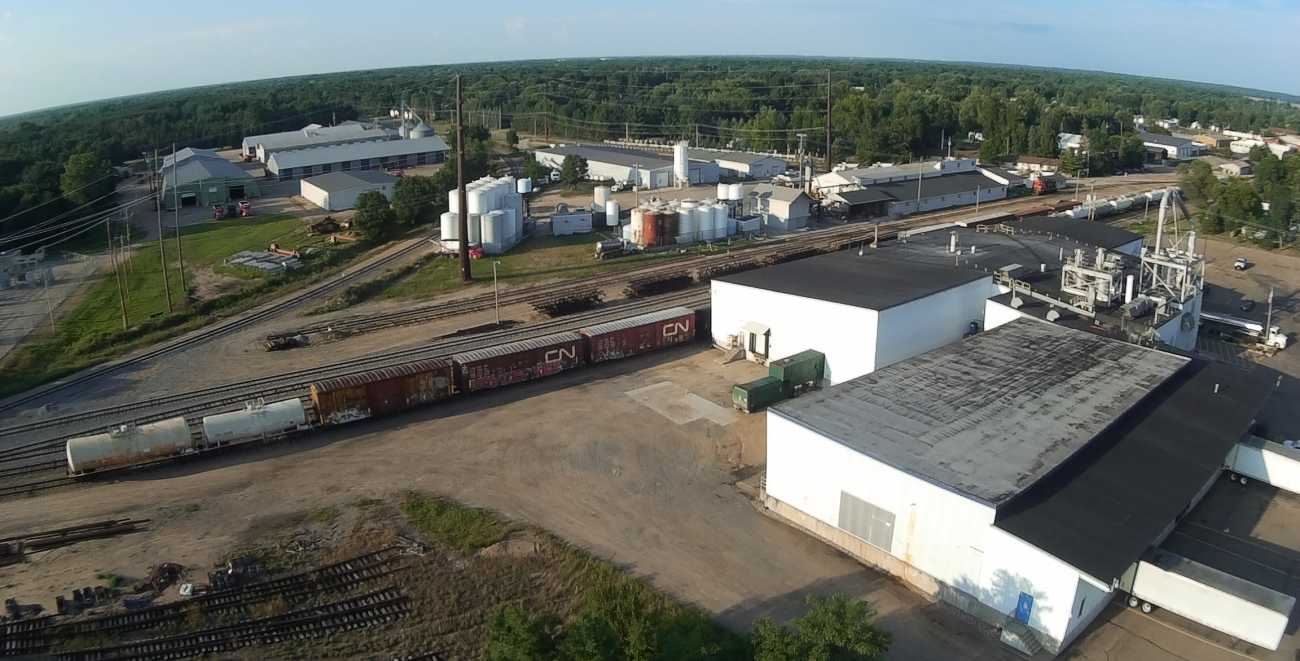 And I hadn't done an aerial survey of Plover in a year, so I made this view of the Penford potato starch plant and the yard, and the SW is a red dot in the far right by Jay Mar. All of Jay Mar is inside of the railroad's wye. |