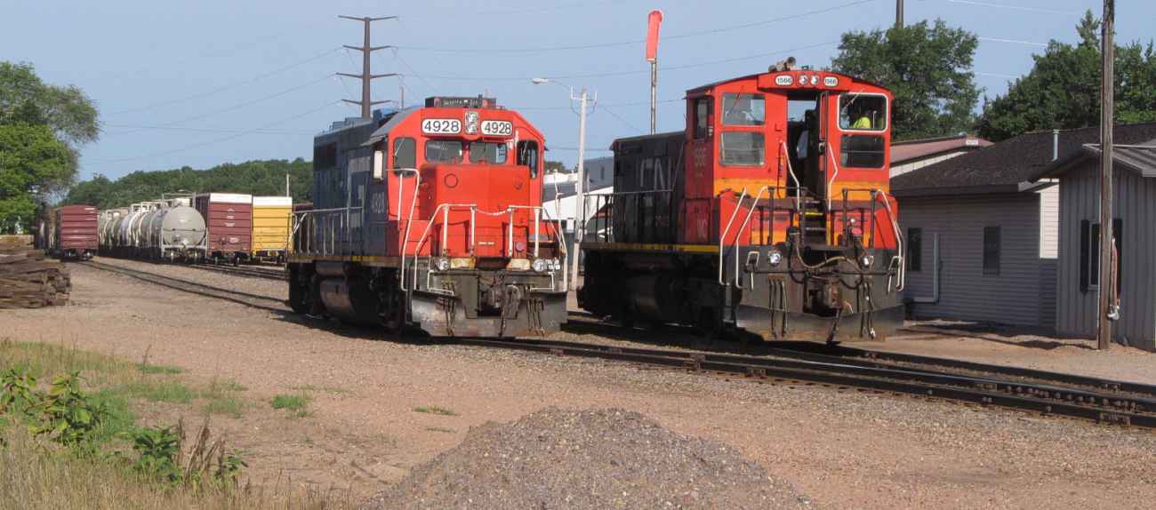| But it wasn't just parked in town. Here's both locomotives by the Plover yard office one morning. |
