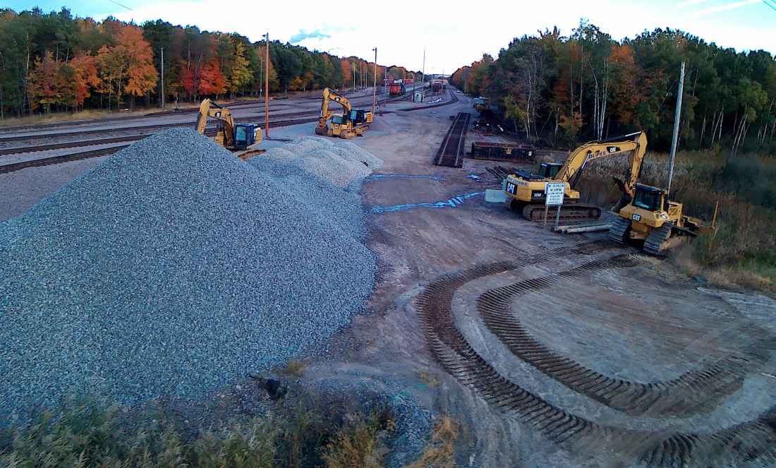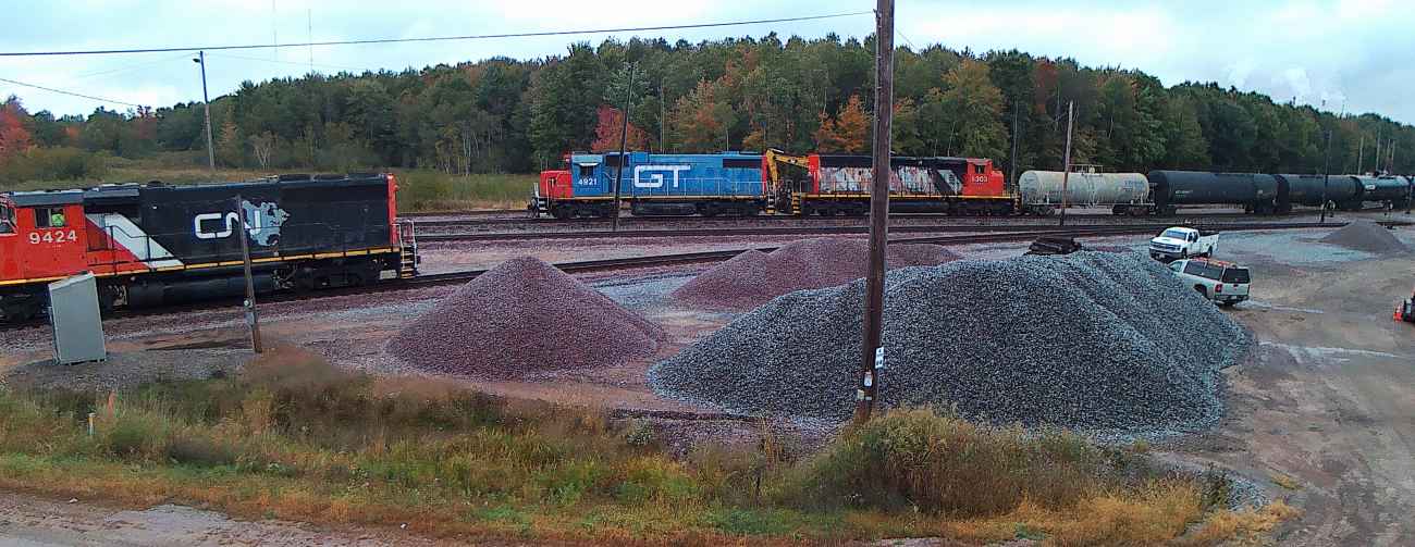 The CN railroad has been fixing the yard lead near 17th Avenue in Wisconsin Rapids. Some ballast is red, some is gray. |