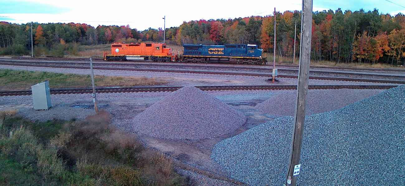 An EJ and E orange locomotive was in town for a few days, and then moved on. The autumn color peaked mid-October. It snowed before the leaves fell, there's an inch as I write this Oct 14, 2018 |