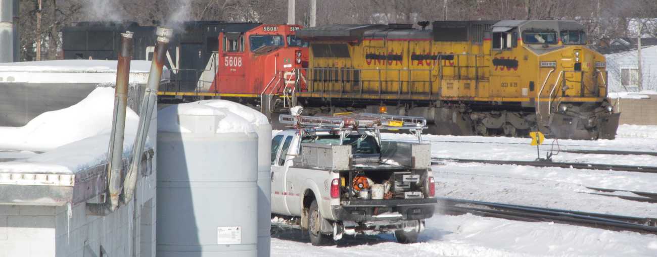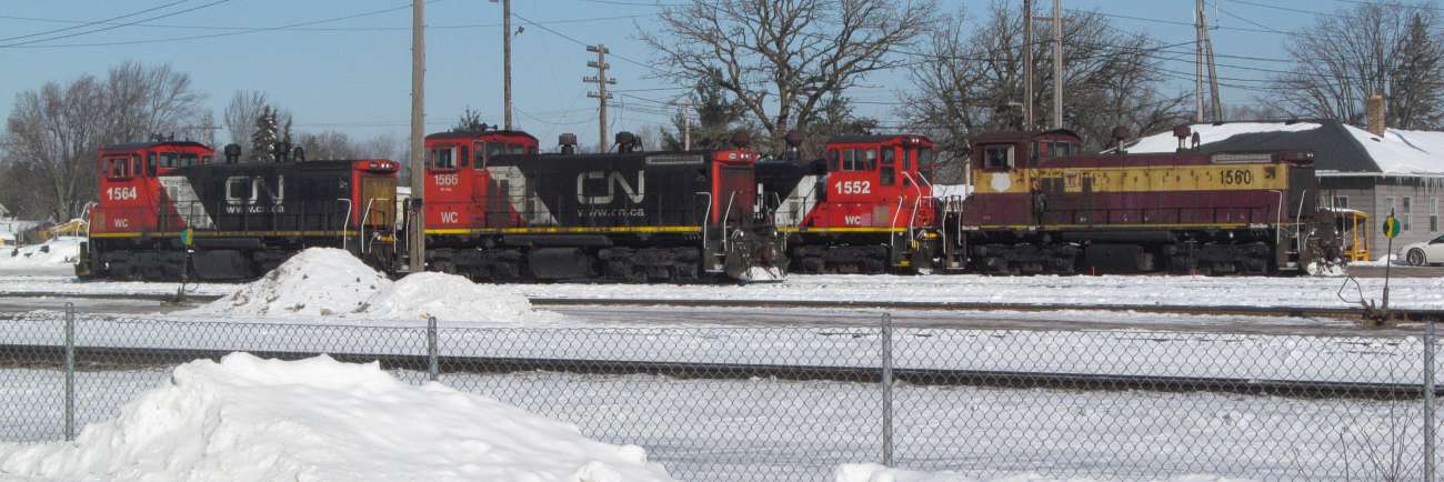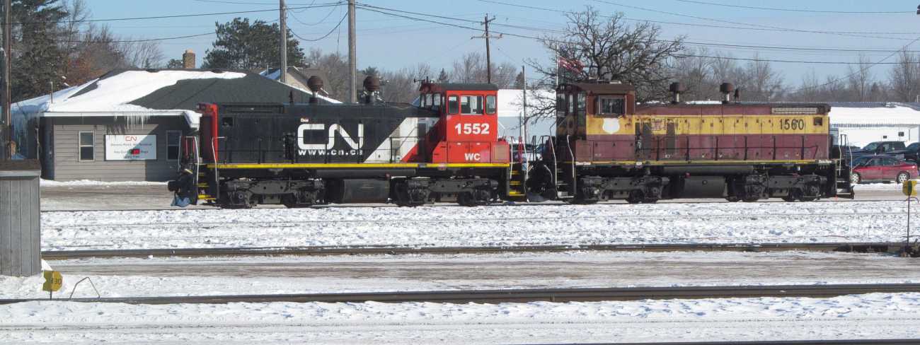 March 6, 2019, Stevens Point, Wisconsin. Two switch engines. The WC 1560 is still around. Is this the last Wisconsin Central painted locomotive? |