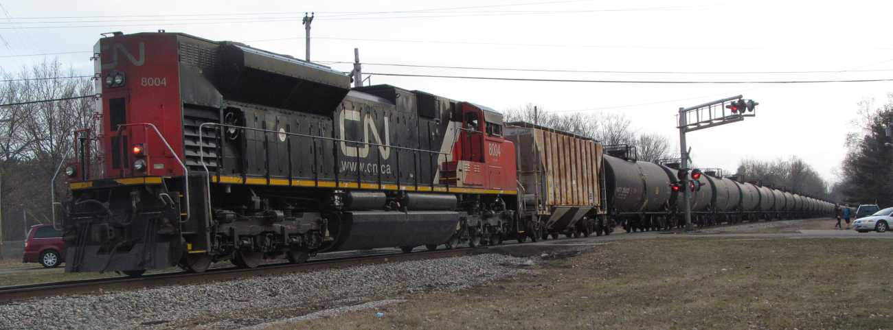 The end. It's a southbound train on the route of CNW / UP trackage rights, they go to Necedah and loop over themselves to get on UP tracks and go east to Chicago. |