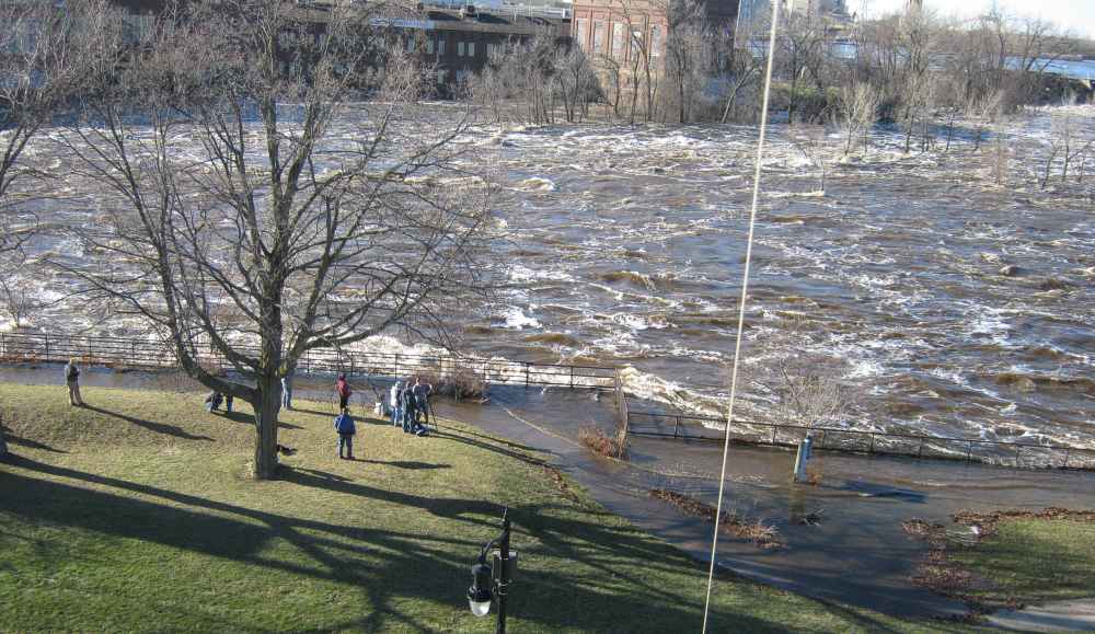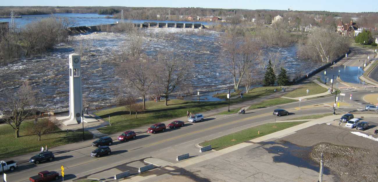 Compare that to the quieter times of a Grand Rapids Winter with all of the river bed showing in low water, in 2018