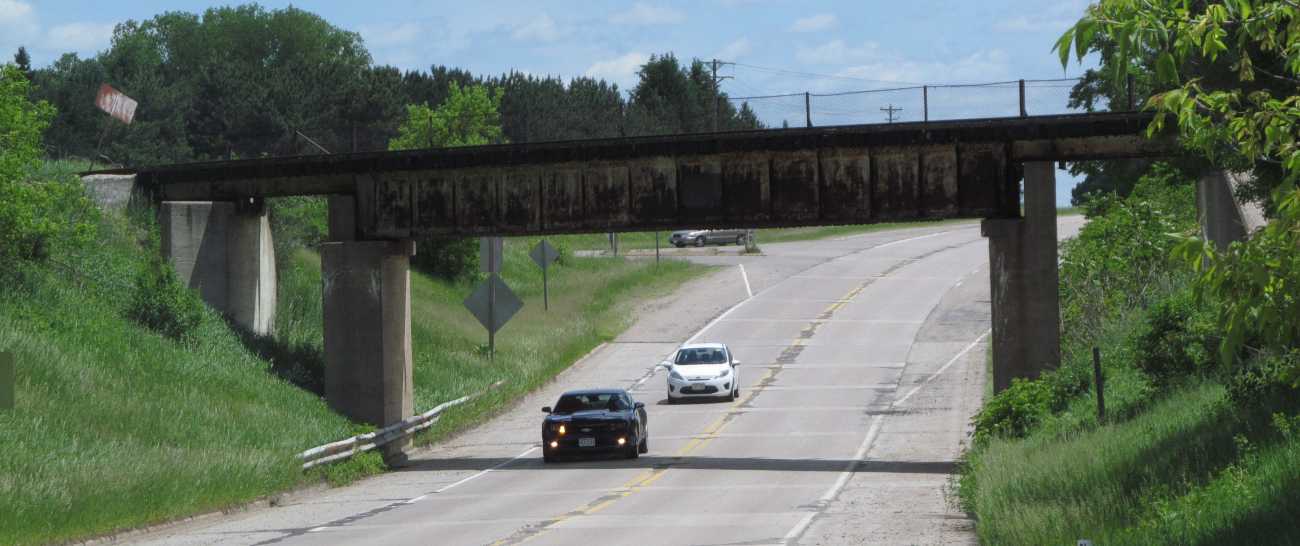 | Looking South at the old US 10 / now County KK bridge. |