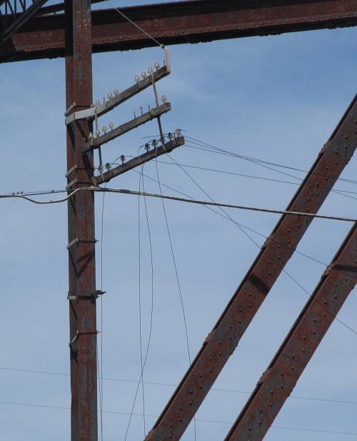 This time, some of the signal wires are drooping from the crossarms.