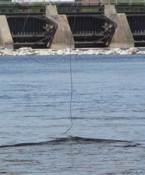 and one wire is dragging in the river.